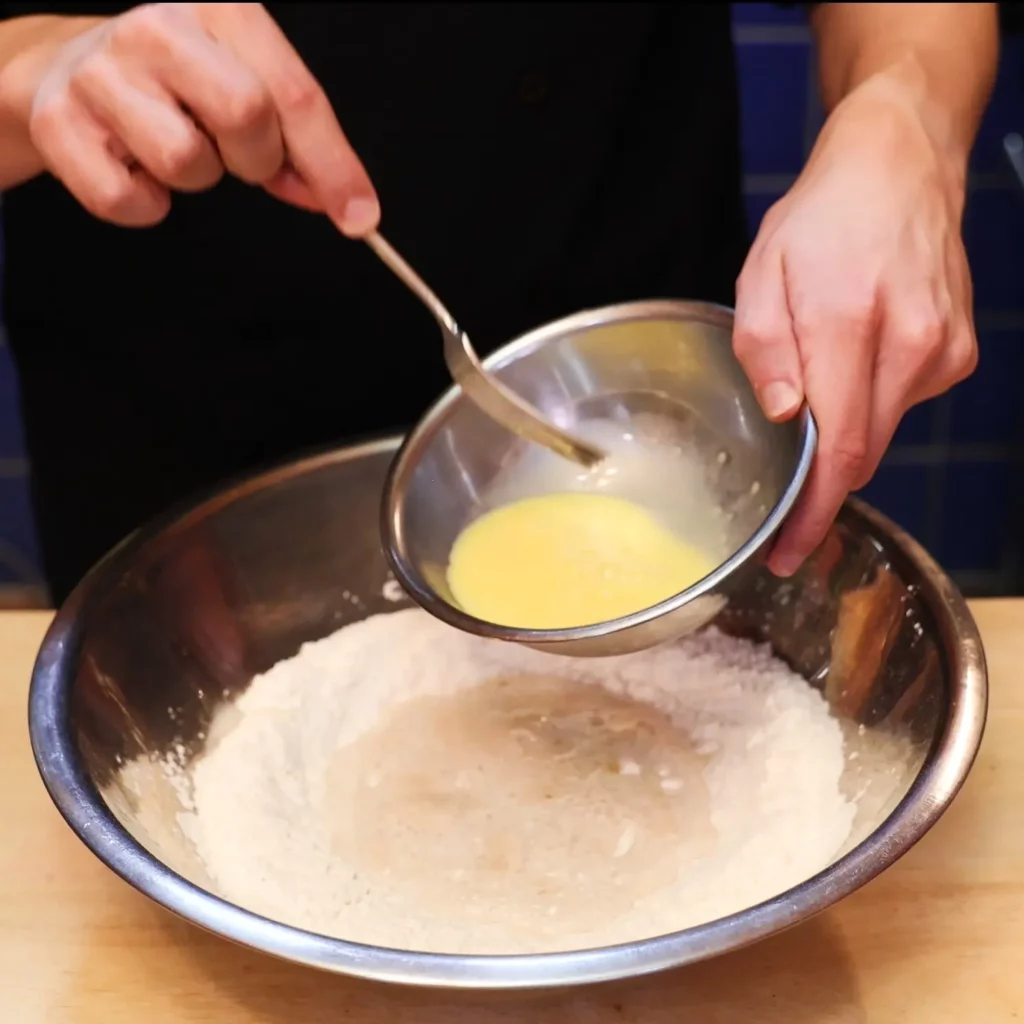 - Tamiser la farine et le sel dans un grand saladier pour bien les aérer.